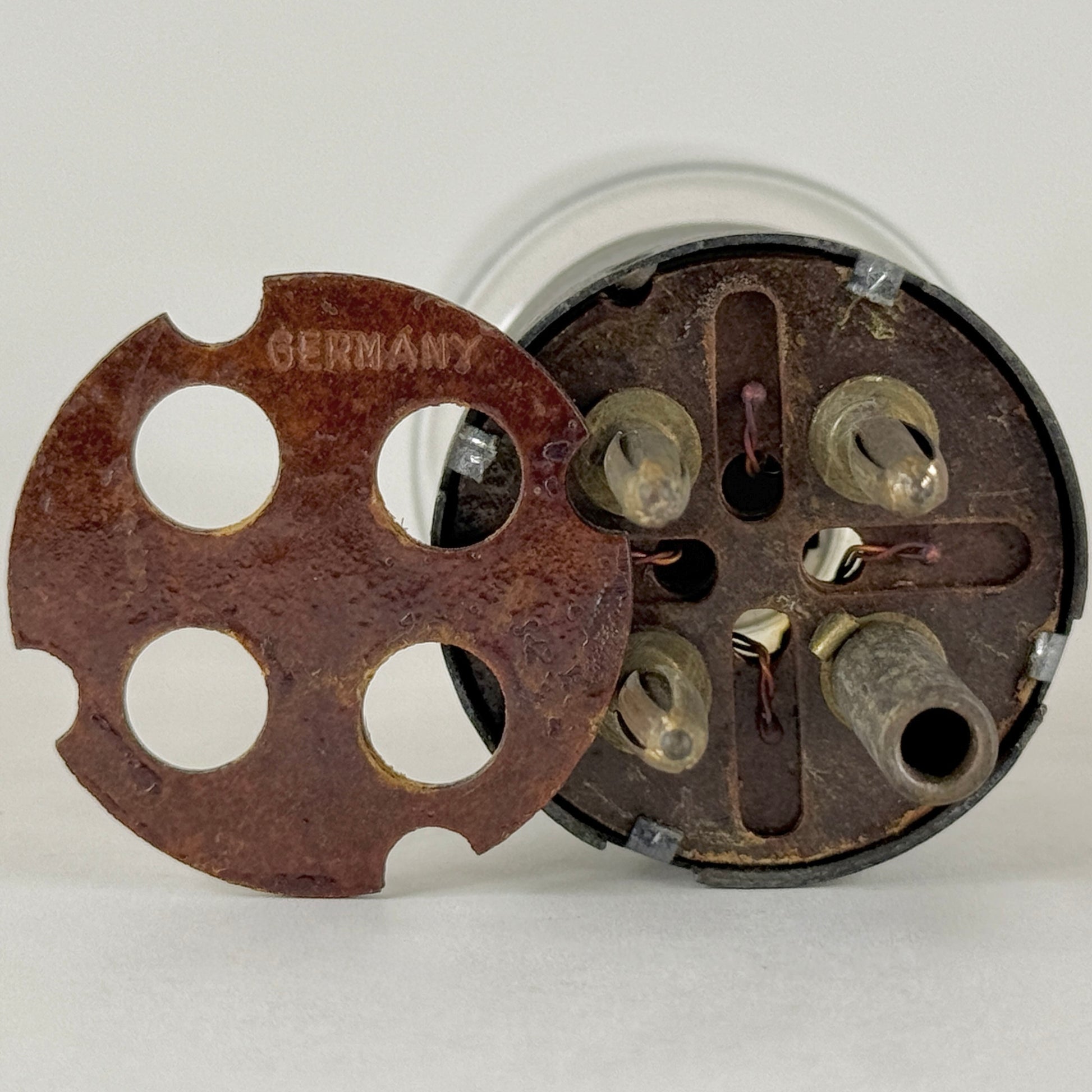 The bottom wafer is loose but holds firm, upon removal the opposite side is stamped "Germany" - see photo 9.